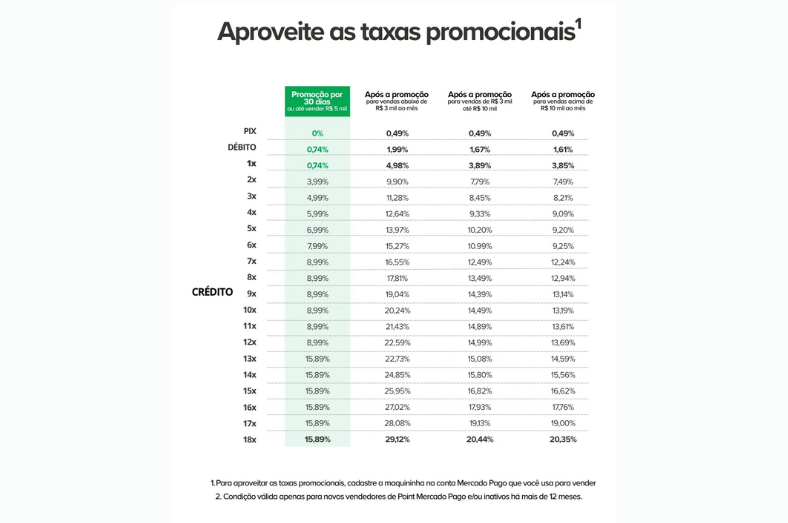 Taxas para quem nunca usou o Mercado Pago ou que não vende há